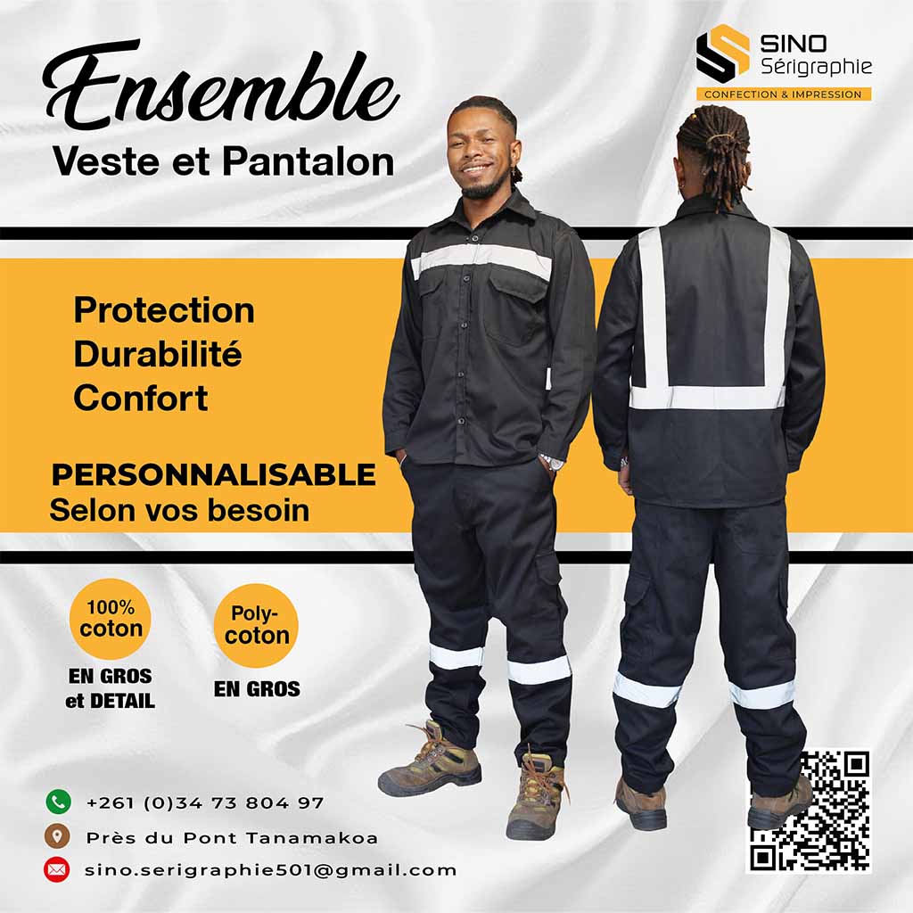 Ensemble veste pantalon personnalisé, résistant et pratique, conçu pour une utilisation professionnelle et une visibilité optimale..
